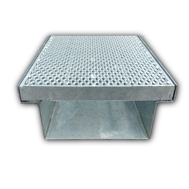 Heel-Proof Grates Heel-proof Grating with Channel Heel-proof Grate in Frame GSADD4 Galvanised Grate with Heel-proof Guard Heel-proof Guard up close Heel-proof Grating with locked down bolts and frame